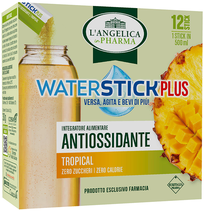 L'ANGELICA WATERSTICK PLUS ANTIOSSIDANTE TROPICAL ANANAS & MANGO 12 STICK ZERO ZUCCHERI SENZA GLUTINE NATURALMENTE PRIVO DI LATTOSIO