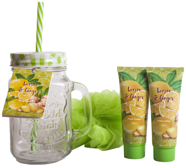 POKHARA BATH SET CRYSTAL LEMON AND GINGER 1 TAZZA VETRO + 1 SPUGNA CORPO + 1 HAND CREAM 50 ML + 1 BODY LOTION 50 ML